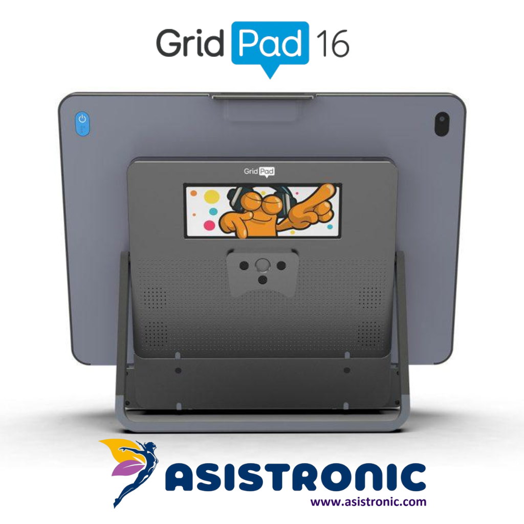 El Grid Pad 16 es un dispositivo de comunicación aumentativa y alternativa (CAA) de alto rendimiento diseñado para usuarios que requieren apoyo en la comunicación y acceso computacional mediante métodos alternativos como tacto, switches y seguimiento ocular (eye gaze), compuesto de una CPU de alto desempeño con hasta 8 horas de duración de la batería con lector ocular. Carcasa y pantalla antimicrobiana irrompible. Protección contra golpes (caídas de hasta 1 mt). Pantalla táctil antirreflejos antigolpes HD de 15,5” y segunda pantalla frontal de 6,5 pulgadas. Botón de encendido remoto. Sonido amplificado de alta calidad. Control de entorno integrado desde la pantalla (permite controlar la televisión, puertas y mas por IR para suministrar independencia). Botones laterales táctiles encauchetados resistentes al agua. Soporte opcional de montaje a piso con ruedas multiposiciones. Equipado con el internacionalmente premiado software asociado de Comunicación CAA GRID3 con pictogramas, teclados y contenidos en español latino.